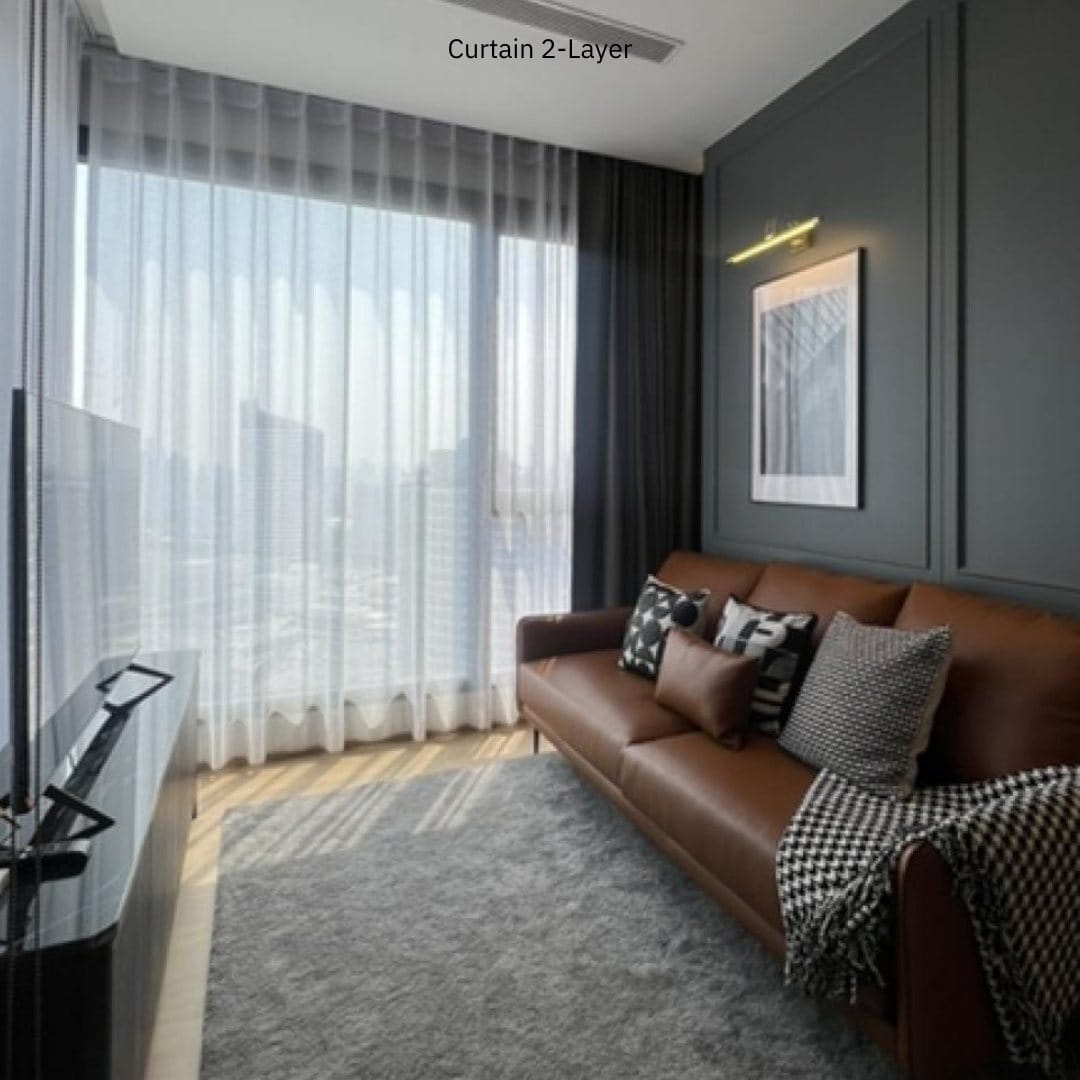 สร้างบรรยากาศที่สมบูรณ์แบบในบ้านของคุณด้วยม่าน 2 ชั้นที่มอบทั้งความสวยงามและประสิทธิภาพการใช้งาน ม่านจีบ black-out ช่วยลดแสงได้ถึง 100% (กรณีติดตั้งที่บังแสงลอด) เหมาะสำหรับผู้ที่ต้องการความมืดสนิทในห้องนอนหรือห้องโฮมเธียเตอร์ และม่านโปร่งที่ช่วยกรองแสงอย่างนุ่มนวล เพิ่มความสว่างและโปร่งโล่งให้ห้องในเวลากลางวัน